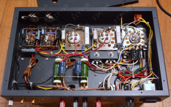 Dây heater (6.3V) xoắn đôi, đặt sát chassis → giảm nhiễu hum.